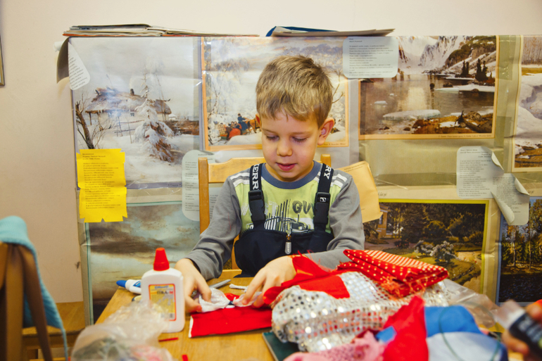 Жалко, что заранее не было известно, что будет, кроме подбора материала. Получилось, что ткань не совсем подходила под эту поделку, но, в принципе, понравилось- совместный "выход", знакомство с новым материалом.