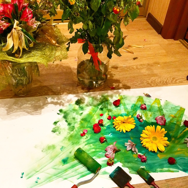 После весенних праздников у нас осталось много цветов , и мы решили окунуться в лето...