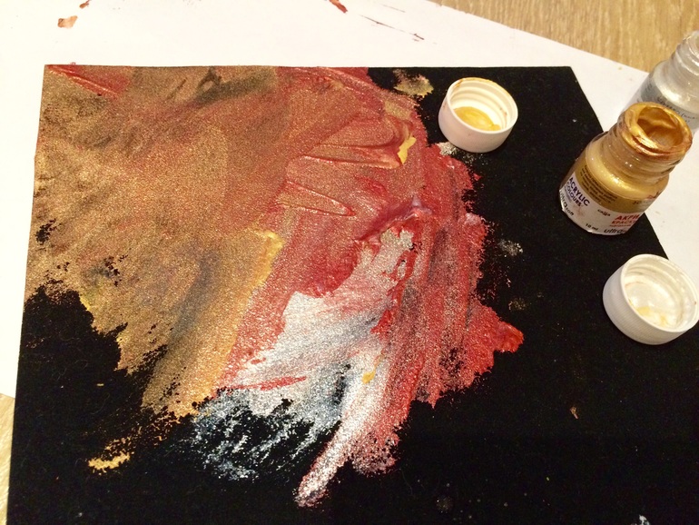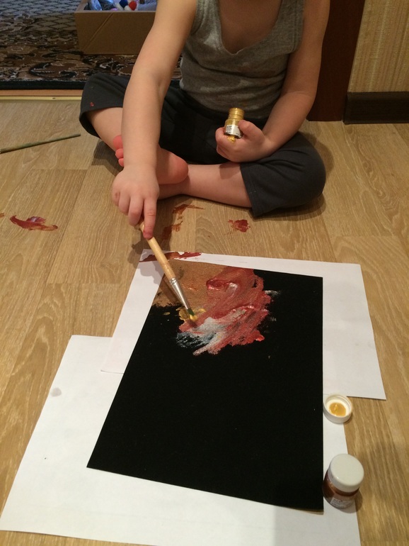 Еще Яр попробовал акриловую блестящую краску. Рисунок получается фактурным.