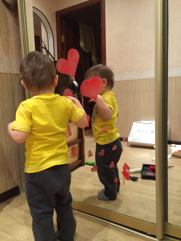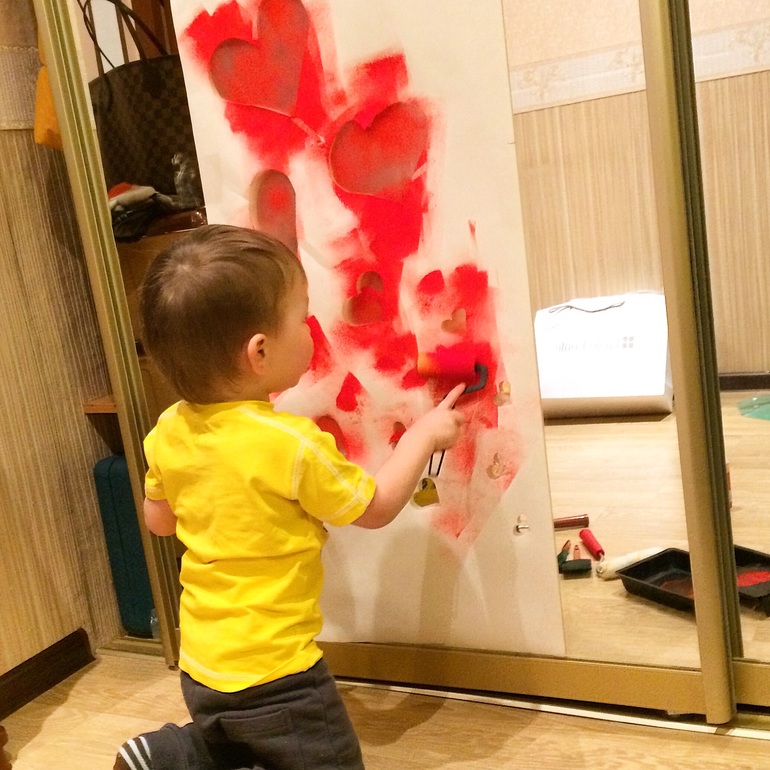 Наконец- то , я добралась до поста о нашем рисовании. Мы продолжаем экспериментировать. Неожиданной находкой для нас с Яром стало зеркало, огромное зеркало на шкафу- купе. На 14 февраля мы использовали его для праздничного декора.