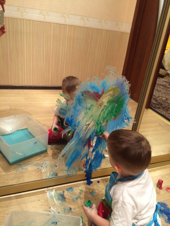 С зеркалом мы продолжили с сенсорной гуашью.