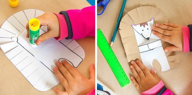 Лапки и мордочку согнули по линии сгиба. Тело намазали клеем и приклеили.
