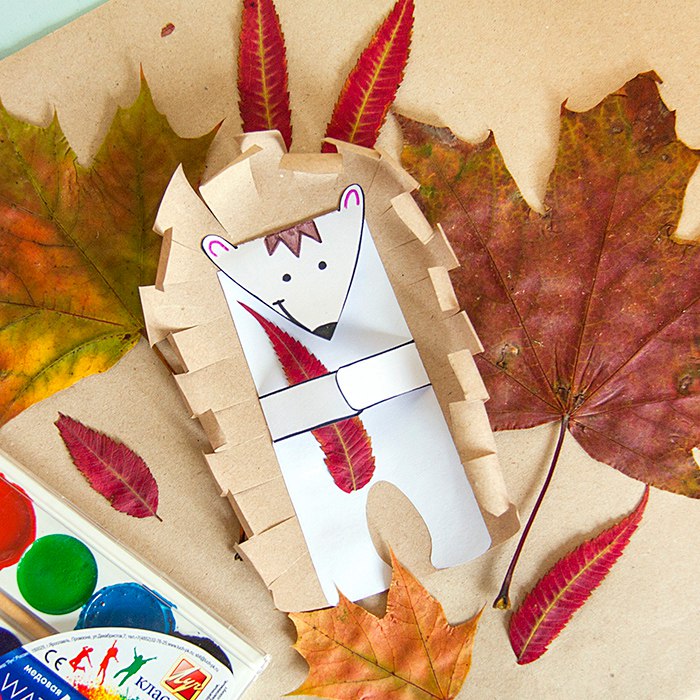 Тело ежика и его иголки заранее распечатали на принтере, затем вырезали обе детали.