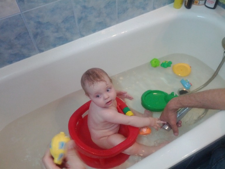 Следующая на водные процедуры была я)Пока мама умывалась Вареник тусил около ванны