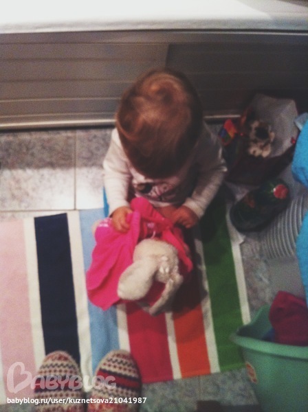теперь можно и маленькие дела свершить,а мама ,тем временем,толстовку постирает.
