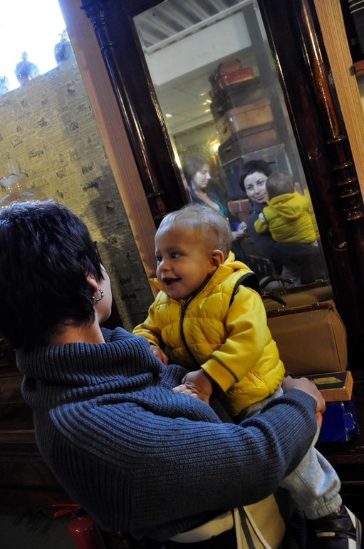Покормила, переодела и снова отправляемся в путь - погода отвратительная, то дождь, то ветер, сыро. Поэтому решила не гулять, а пойти с подружками в антикварную лавку.