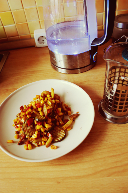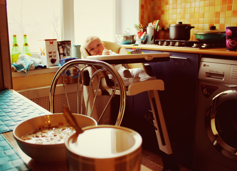 Пока Леха занят игрушками в стуле, я могу насладиться утренним кофе и завтраком.
