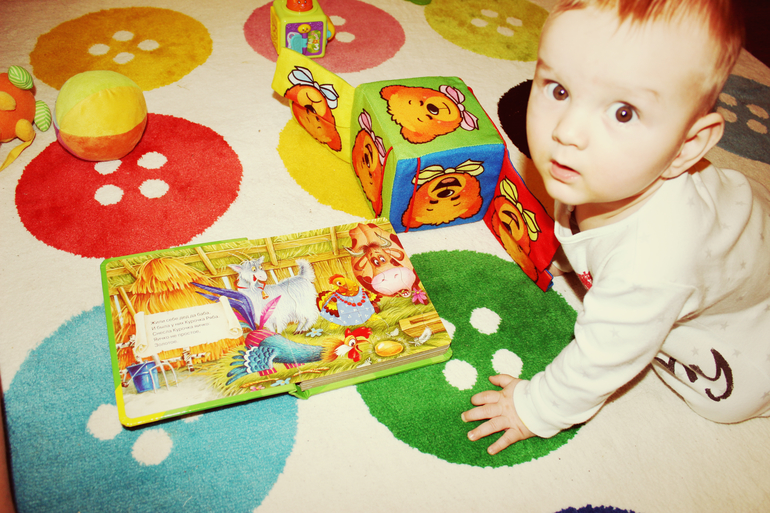 В 16-30 проснулся сын, сели играть. Почитала ему книжку. Поиграл, бахнулся башкой об пол, поревел, успокоился)))