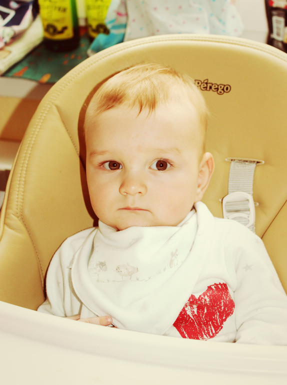 Ближе к 14 начинает потирать глаза - хочет спать. Идем кушать, сегодня у нас на обед - морковка. Пока открываю и грею банку - сидит с несчастным видом. Уминает быстро, без капризов. Процесс фоткать не стала, тут за ним глаз да глаз, сорвет слюнявчик и уделается весь)