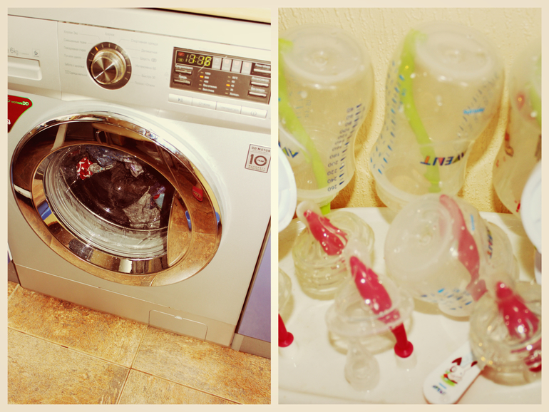 Пока ребенок занят своими игрушками, у меня домашние дела - мытье посуды, стирка...