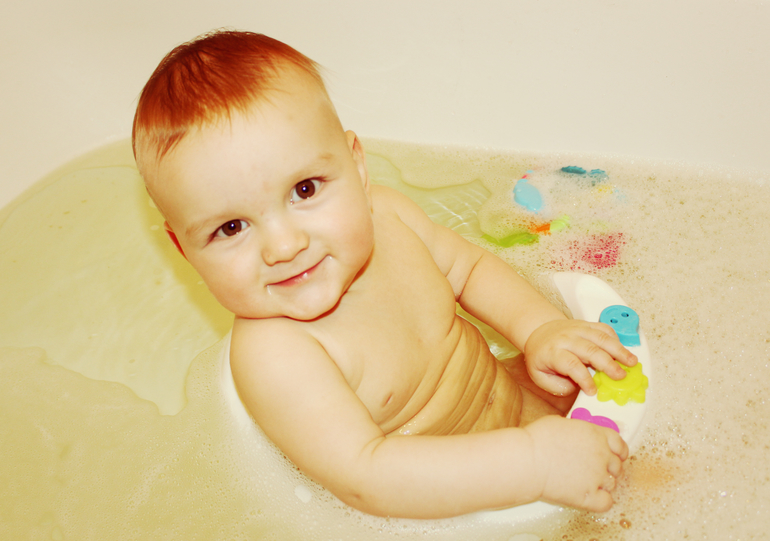 В 20-30 идем купаться, довольно сидит в сидушке, рассматривает пену и ест грызушку.