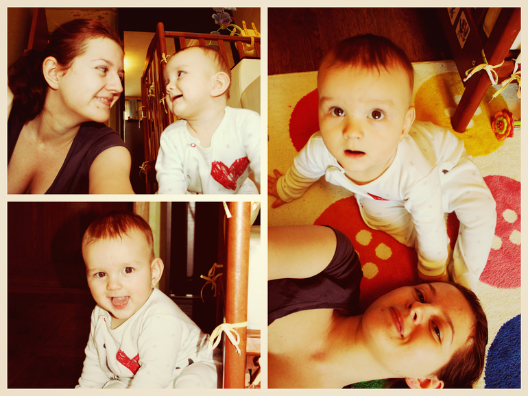 Сын проснулся в хорошем настроении, сидит играет. Есть время немного покрутить обруч! Типа худею к лету)) Почему-то фотка обруча грузиться не хочет, так что пропустим ее.