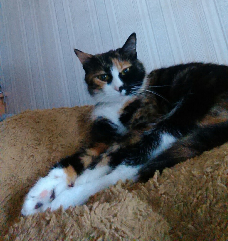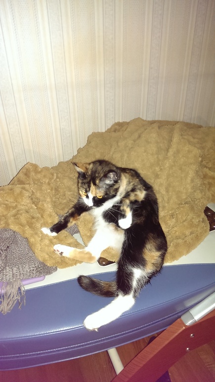А это Матильда собственной персоной. У нее несколько мест для сна. В последнее время спит с нами в комнате, на свёрнутом пледе. А был период спала в другой комнате, в гордом одиночестве )))