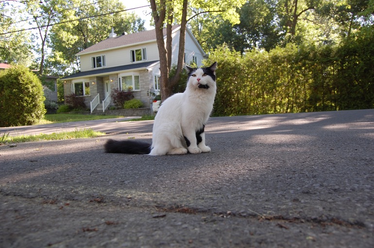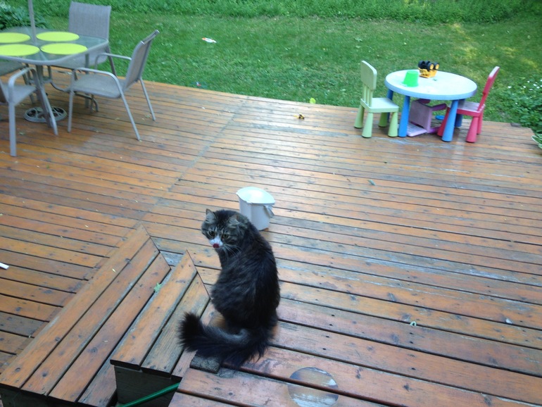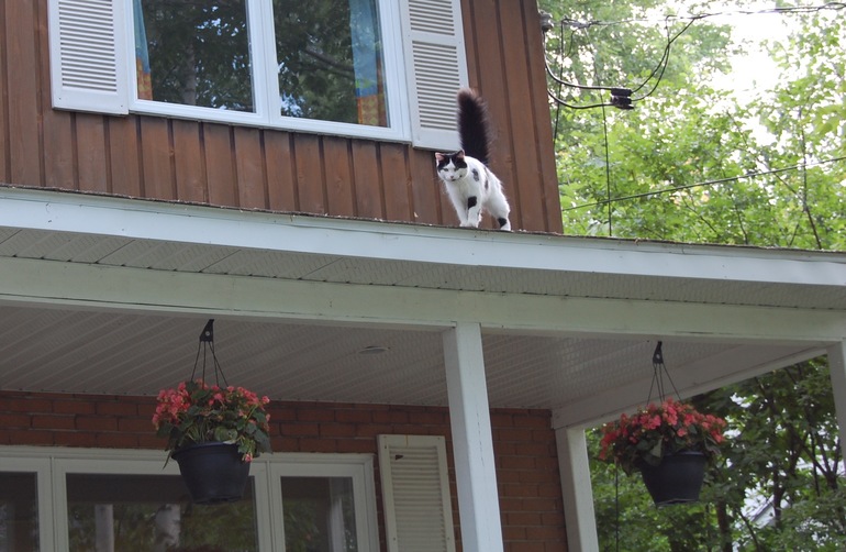 Котики вернулись из ночного, поели и снова идут душить мышей.