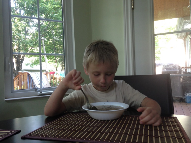 Не, я ела тоже что-то, но это не так увлекательно, как трактора и бассейн )