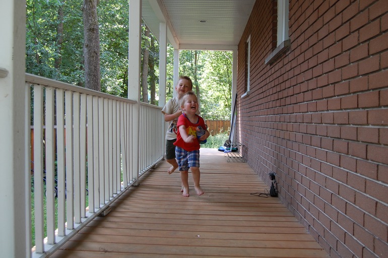 Одна из наиболее умиляющих меня картин - когда они носятся босиком по этим заливным травкам.