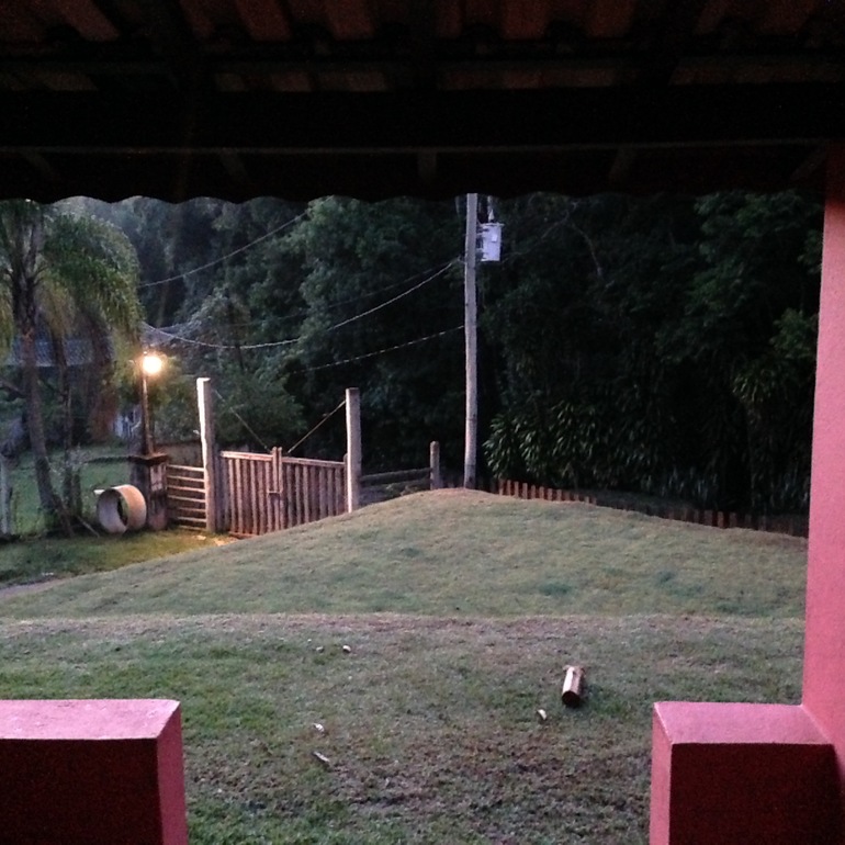Выхожу через 10 минут из душа и в окне картина уже иная. Фонарь у ворот потух.