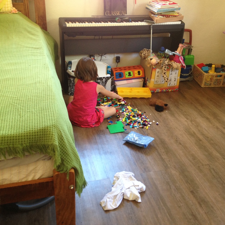 После этой маленькой передышки снова взялась за дела. Все пропылесосли, вымыла полы, протерла стеклянную дверь (на ней каждый день появляются опечатки маленьких пальчиков), собрала мусор. Девочки прибрали бардак чуть-чуть.