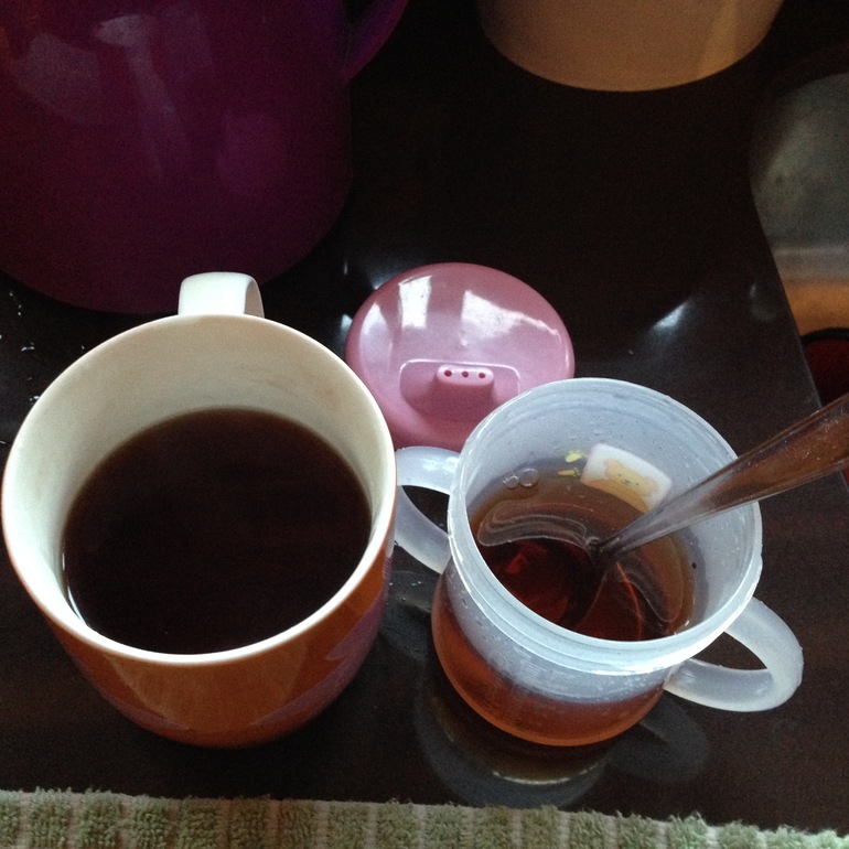 Пока читаю, пью чай из шиповника, заваренный в термосе с вечера. Сегодня еще и с черникой. Соне тоже налила, добавила ложку липового меда.