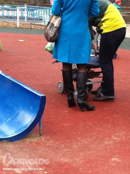 И была одна деталь, которая меня заинтересовала... Даже не знаю как описать и сфотать было неудобно)) ща добавлю что смогла сфоткать.. Вот видете коленку левую девушки в синем пальто? Там такой хлястик торчит! Их два с двух сторон на раме сзади у коляски..Я почему то понадеялась. что это новая фишка, чтоб в сложенном состоянии коляска компактнее держалась и колеса не овталивались...Вы случаем не знаете что это на самом деле?