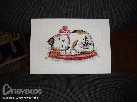 Вышивка крестом ГОТОВЫЕ РАБОТЫКошечка - "Благополучие в доме") Оформлена в виде открытки и подарена очень хорошему человечку. Надеюсь, принесет в ее и так очень славную семью покой и полное благополучие. (Наборчик достался мне по ОП от