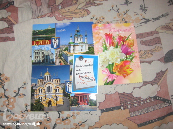 Меня ждал сюрприз: открыточки с видом Киева, открыточка с 8 марта и магнитик, муж смеялся долго)))) Оксана спасибо огромное!!!