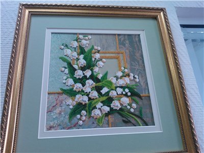 Так смотрятся ландыши, вышитые мелким бисером. Есть фото большого размера, видно каждую бисеренку.