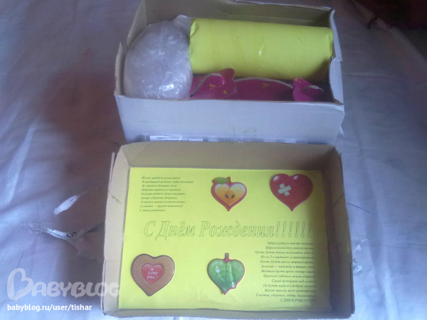 (а сердечки я наклеила на холодильник-радуют глаз!!!! полностью не получилось от коробки отлепить...)