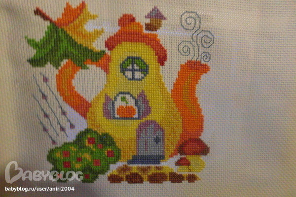 вышился вот такой домик на осенную тематику, остался бек и еще хотела спросить надпись ОСЕНЬ вышивать или нет?