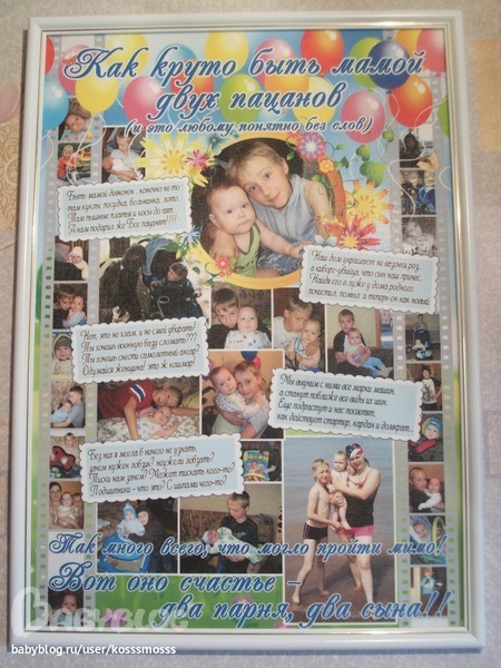 а ещё оформила в багет коллаж с дня рождения сына. Он классный, жаль было б если просто где-нибудь пылился...