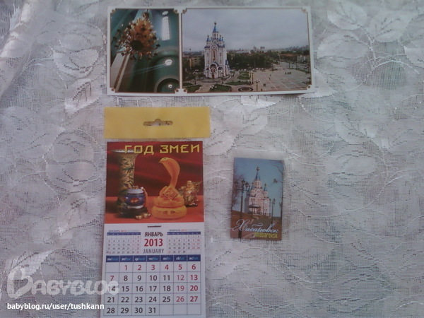 Давно меня не было в игре, и вот после перерыва первый магнитик от Светланы А. из Хабаровска! а с ним еще красивая открыточка и магнитный календарик!