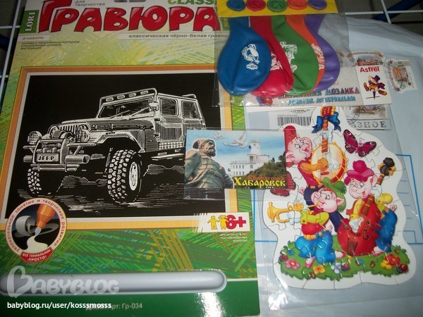 Гравюра для творчества моему старшему сыну! Воздушные шарики со смешариками =) и магнитные пазлы для моего младшенького!!! Светлана, спасибо огромное!!! Шарики тут же надули, пазлы разобрали =))))))))))