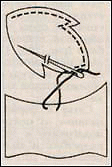 Для обшивания брид и выполнения петельного шва пригодны нитки мулине (в 1-2 сложения), ирис, гарус (бумажный и шёлковый). Там, где бриды перекрещиваются, обшейте сначала всю нижнюю, затем верхнюю бриду до середины. Скрепите обе бриды в том месте, где они перекрещиваются, и выполните пучок. Для этого иглу с ниткой прокладывайте то над бридой, то под ней, перештопывая их и продвигаясь по кругу.