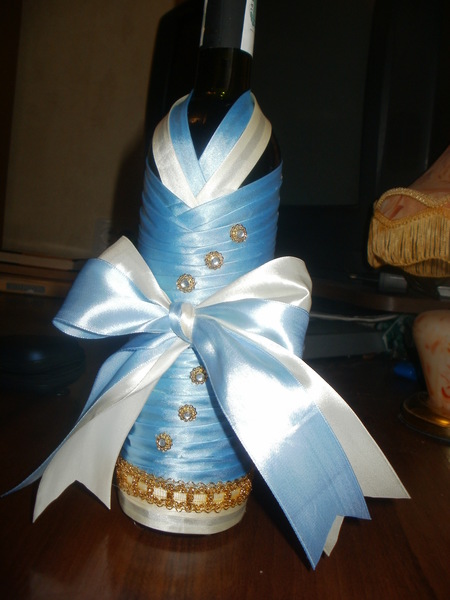 Ого! Она восхитительна! Отлично, что она не чисто белая. Восторг!!!! У меня этим летом была серебянная свадьба, жаль, что я не знала об украшениях бутылок