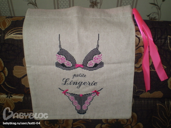 Ещё одно творение (иначе назвать не могу!) мешочек для белья!Вероника,выполнила всё так аккуратно,жаль,что фото не может этого передать...