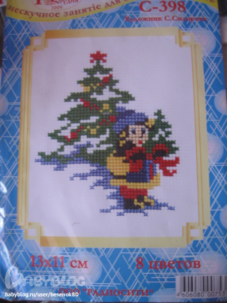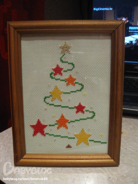 конвертик с открыткой и письмом(так давно не получала рукописных писем.....),набор для вышивания и самое главное-вышитую ёлочку!Иннусь,я её вставила в рамочку,вот теперь отчитываюсь)))Спасибо огромное