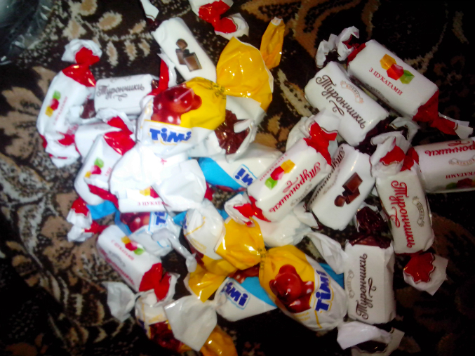 конфетки, разные разные вкусные вкусные, почему то захомячил муж, и не признается куда, вот уж сладкоежка))))