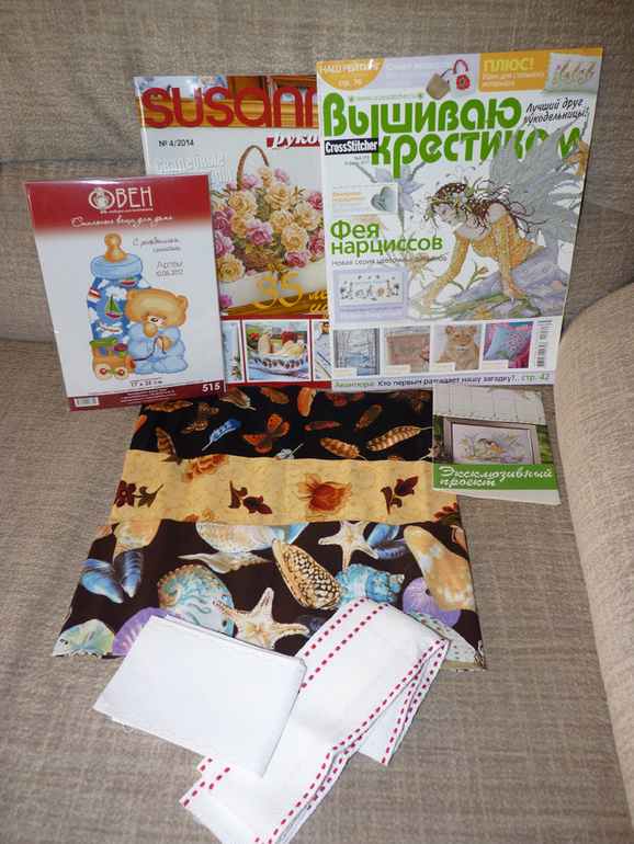 Моего хомячка тоже одарили с макушки до лапок, и тканюшки, и канва-лента и наборчик с вышивкой и журнальчики