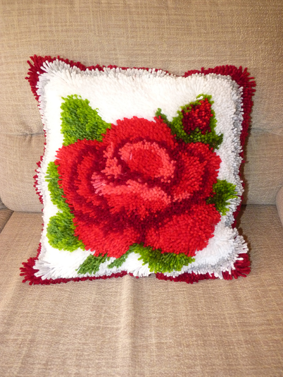 А еще у нас теперь есть очень красивая подушечка в ковровой технике