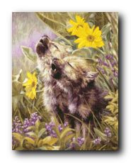 Не вышивала, но некоторые дизайны в отшивах нравятся. Все как-то больше тигры))). Девочки говорят, что прогонистые разработки, но если вас это не останавливает, то почему бы и нет. А по этому дизайну... Фон симпатичный: цветочки, травки. А воющих животных, пусть даже маленьких, не стала бы себе вышивать. Предубеждение какое-то. С тоской ассоциации.