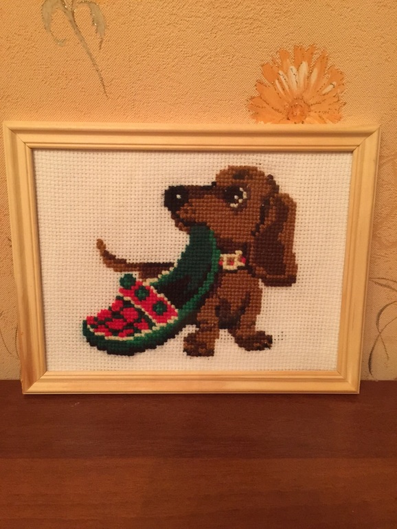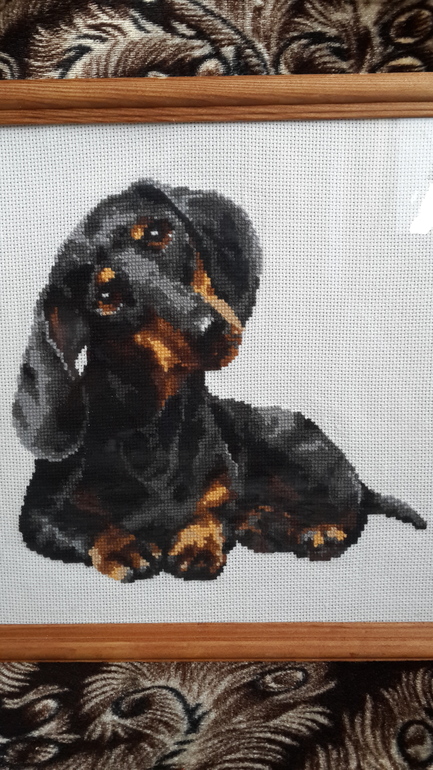 У меня племяшка такую таксу с тапком вышивала. Я потом ее на подушку пришила и она дооооолго с ней спала ))))) такс тоже любите?