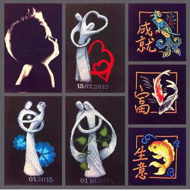Очень красивые работы и что характерно все на черной канве)) я пока не пробовала ни разу на черной вышивать, наверное сложнее чем на простой белой. в планах вышить три картины рождение, супружество и любовь)