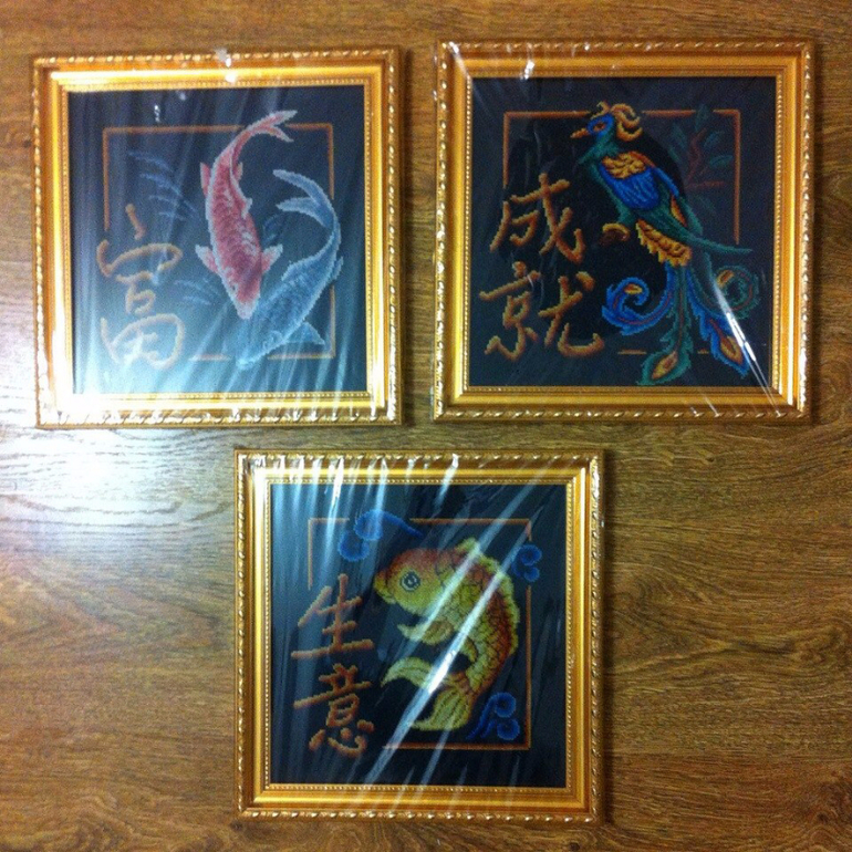 Эти три картины я вышила мужу на работу: бизнес, успех и богатство.