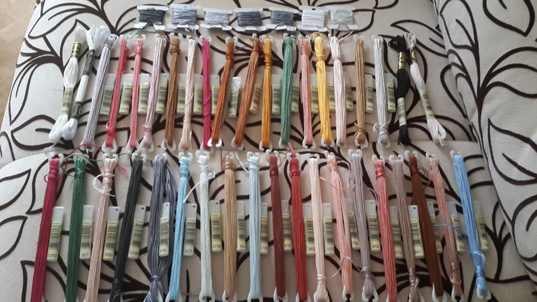 напишу номера только в разнобой, а то по порядку некогда собирать)))остатки ниточек на картонных маленьких бобинках — 415 414 317 762 318 3799на пластмассовых бобинках — 783 420 3328 760 778 951 3743 3828 453 948 780 650 414 3350 3770 775 3799 794 3778 3830 422 3064 754 452 3350 743 3756 632 320 758 827 367 435 433 841и 4 нераспакованных моточка — 310 3865 S5200 3866