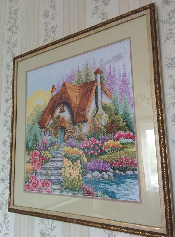 1) Самой грандиозной вышивкой в принципе оказался "Маленький домик от Белоснежки. Вышила по моим меркам очень быстро - за 2 месяца