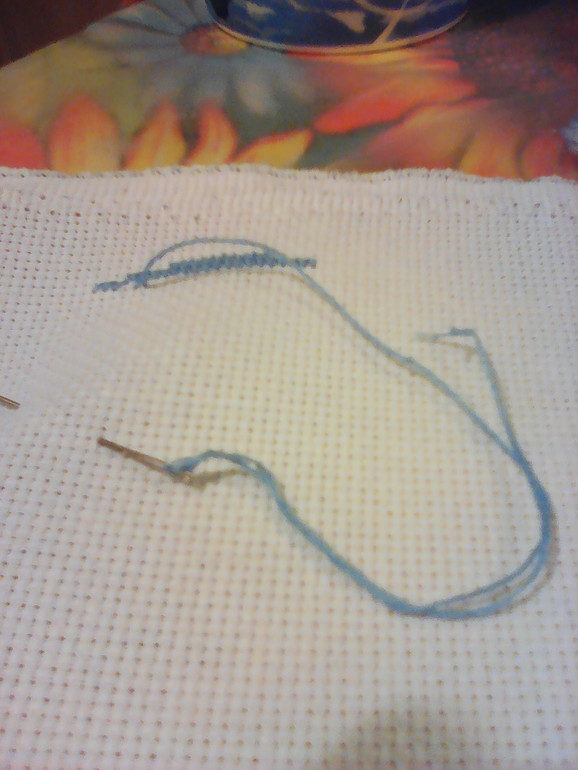 Всем привет! У меня сынуля где-то "словил" ротовирус (рвота,понос,темпа 39), хотели нас в больницу положить, но вроде обошлось. Так что я с четверга за вышивку не бралась, не до неё было(( Но все равно покажу хоть и маленькое,но продвижение :
