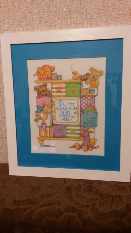 Люблю метрики)) И оформление с паспарту))) Очень нравится, сыночку с мамой-рукодельницей повезло! Хорошенькая картиночка.