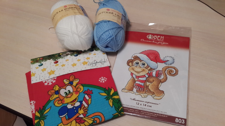 Набор для вышивки с символом наступающего года) пряжа для рукоделия и полотенчик для кулинарии!!!@
