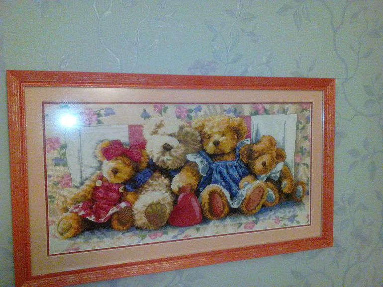 Осталось больше половины, мне кажется. Уже после НГ оформила в багетке, ещё через месяц муж повесил в спальне)))