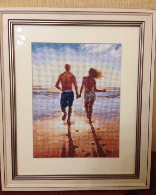с замечательной работой , которую она вышила на свою 7 годовщину свадьбы )